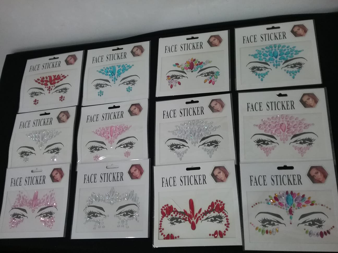 Cartela de strass ,adesivo para rosto.