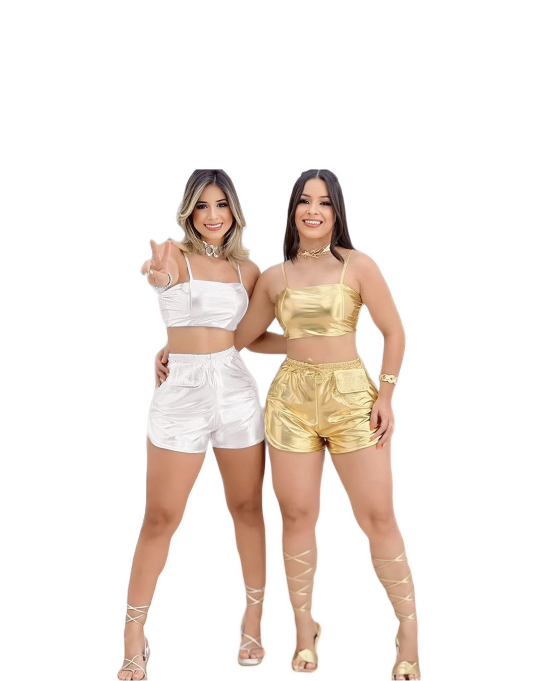 Conjunto metalizado com short e top com alça.