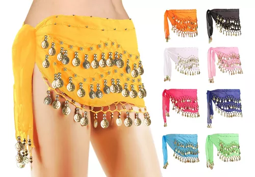 Lenço colorido com moedas, ideal para dança artística, fantasia de cigana, odalisca.