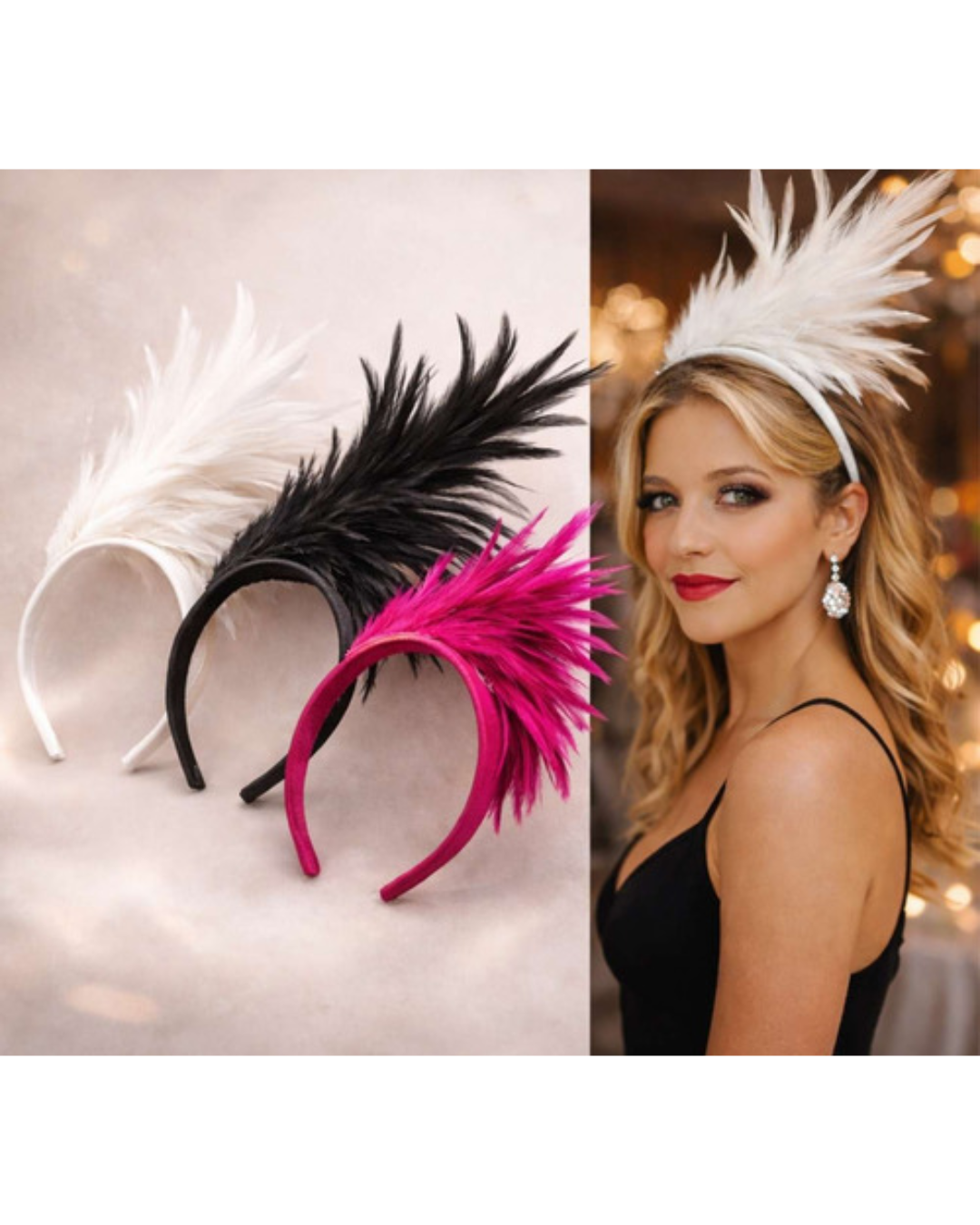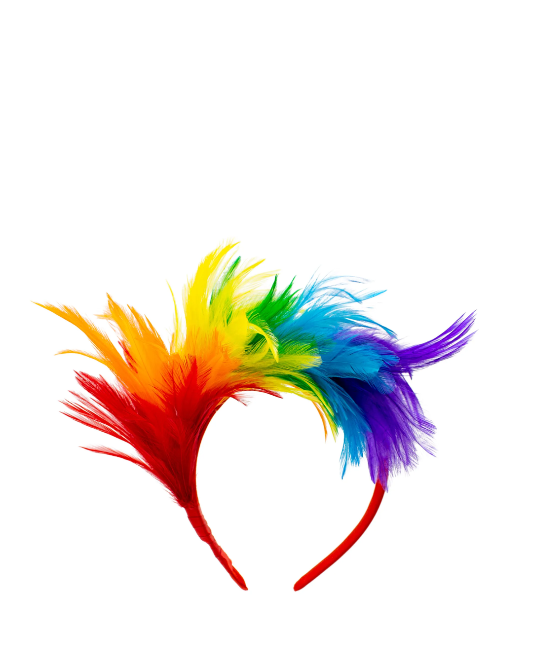 Tiara com pena colorida.